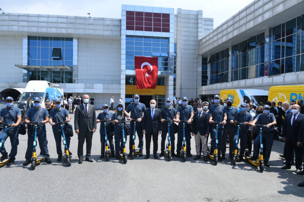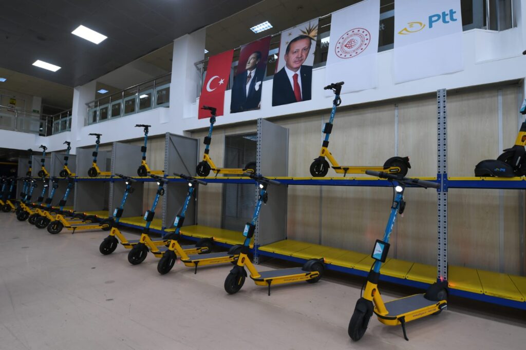 Karaismailoğlu, “Skuter, ülkemizin en köklü kurumlarından biri olan PTT dağıtım hizmetlerinde kullanılacak. Büyükşehirlerimizde ve özellikle gençlerimiz arasında kullanımı yaygınlaşan elektrikli bisiklet ve e-skuter gibi mikro hareketlilik araçlarının dağıtım hizmetlerinde de kullanılmaya başlanması, karbon emisyonunu ve trafiği azaltarak vatandaşlarımızın çok daha hızlı bir şekilde hizmet almasını sağlayacaktır. Pilot çalışması, İstanbul ilimizde başlayacak” dedi.Ulaştırma ve Altyapı Bakanı Adil Karaismailoğlu, PTT AŞ’nin “Dağıtım Hizmetlerinde Elektrikli Skuter Kullanımının Lansmanı”na katıldı. Dijitalleşmeyi ve mobiliteyi tüm iş alanlarında yaygınlaştırmayı ve hızlandırmayı amaçladıklarını belirten Karaismailoğlu, “Toplumların ulaşım konusundaki ihtiyaç ve beklentilerinde yeni eğilimler ortaya çıkıyor. Biz de Ulaştırma ve Altyapı Bakanlığı olarak, doğaya duyarlılığımızı yansıtan uygulamalar geliştirmeye, hayatı kolaylaştıran bu döneme entegrasyonumuzu hızla tamamlamak için önemli projeleri hayata geçiriyoruz. İstanbul’da bugünden itibaren PTT dağıtım görevlileri teslimatlarını çevreci ulaşım aracı olan elektrikli skuter ile yapacaklar” ifadelerini kullandı.