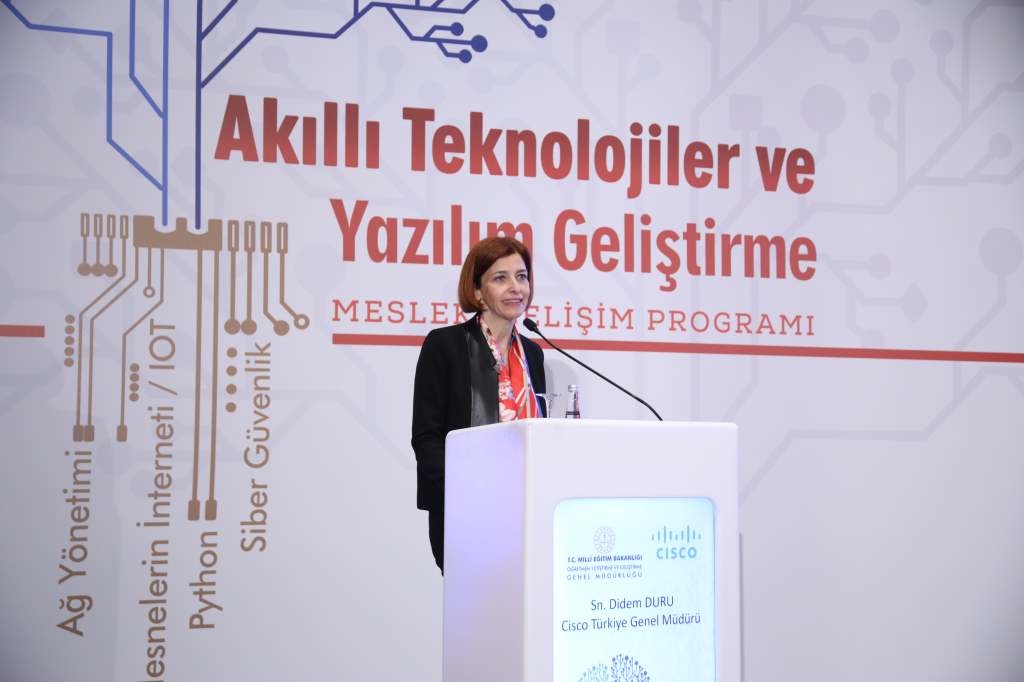 Milli Eğitim Bakanlığı (MEB) Öğretmen Yetiştirme ve Geliştirme Genel Müdürlüğü ve Cisco iş birliğiyle hazırlanan “Akıllı Teknolojiler ve Yazılım Geliştirme Mesleki Gelişim Programı” projesinin tanıtımı, MEB Bakanı Ziya Selçuk ve Cisco Türkiye Genel Müdürü Didem Duru’nun katılımıyla Ankara’da yapıldı.