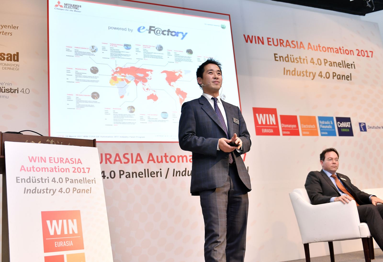 Dünya otomasyon devi Mitsubishi Electric, imalat sanayisinin Avrasya bölgesindeki buluşma noktası WIN Eurasia Automation Fuarı’nda yeni ürünü “Panolu Inverter Çözüm Platformu”nu tanıttı. Bu yıl 16-19 Mart tarihleri arasında Sanayi 4.0 konseptiyle düzenlenen fuarda, Sanayi 4.0’a uyumlu lansman ürünüyle öne çıkan Mitsubishi Electric, yeni endüstri evresine yanıtı e-F@ctory konseptini anlattığı dijital fabrika simülasyonları ile de dikkat çekti. Mitsubishi Electric Corporation Fabrika Otomasyon Sistemleri Grubu e-F@ctory Global Alliance Koordinatörü Hajime Sugiyama, fuar kapsamında düzenlenen dünyada Sanayi 4.0’a bakış konulu panelde gerçekleştirdiği sunumuyla ilgi topladı. Zar atan ve gelen numarayı algılayarak altı farklı endüstriyel uygulamadan o numaraya karşılık geleni gerçekleştiren robot şovuyla da farklılaşan Mitsubishi Electric, sergilediği tüm fabrika otomasyon çözümleri ve mekatronik CNC ürünleriyle Türkiye’nin yeni otomasyon devrimine hazır olduğunu bir kez daha kanıtladı.