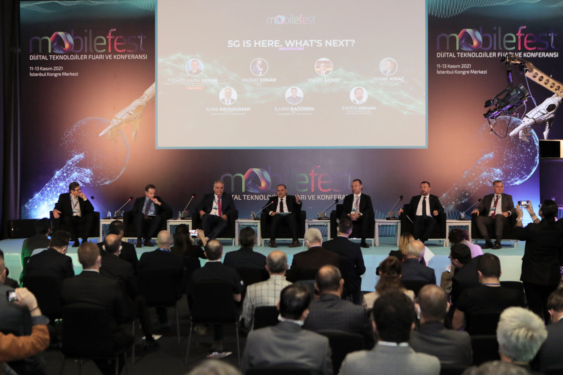 5G Panel Oturumu: Ulaştırma ve Altyapı Bakan Yardımcısı Sayın Ömer Fatih Sayan’ın moderatörlüğünde Turkcell CEO’su Murat Erkan, Vodafone CEO’su Engin Aksoy, GTENT Yönetim Kurulu Başkanı İlyas Kayaduman, HTK Yönetim Kurulu Başkanı İlhan Bağören ve ULAK Haberleşme Genel Müdürü Zafer Orhan’ın katılımıyla şimdiye kadar gerçekleştirilmiş en kapsamlı 5G Panel oturumu.